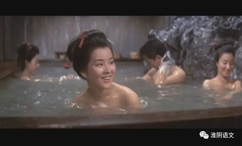“那些家伙到对面的浴场来了。你瞧,他们好像注意到这边,还在笑哩。”顺着他所指的方向,我朝河那边的公共浴场望去。有七八个人光着身子,朦胧地浮现在水蒸气里面。