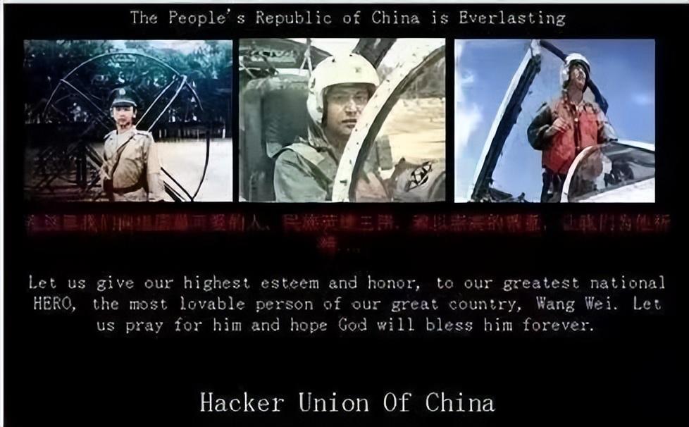 2001年的4月28日,美国的一些官方智能网站也遭到了入侵,这些美国网民使用网页浏览时,会突然出现王伟烈士的照片,在照片下面还会有配有一行中英文的字幕: