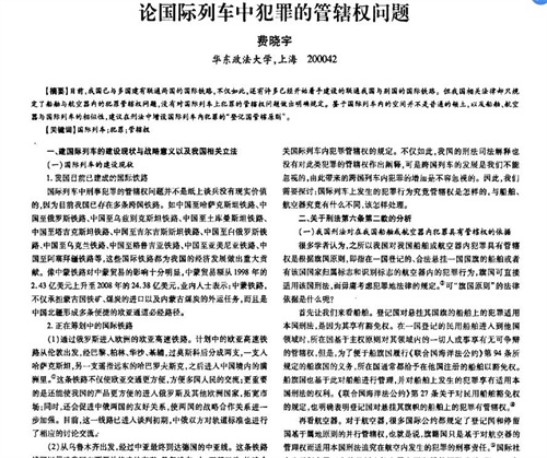 关于这个问题,华东政法大学的费晓宇发表过这样一篇文章,即“论国际列车中犯罪的管辖权问题”,他提出了我国刑法就这一问题做出的相关规定和论说。