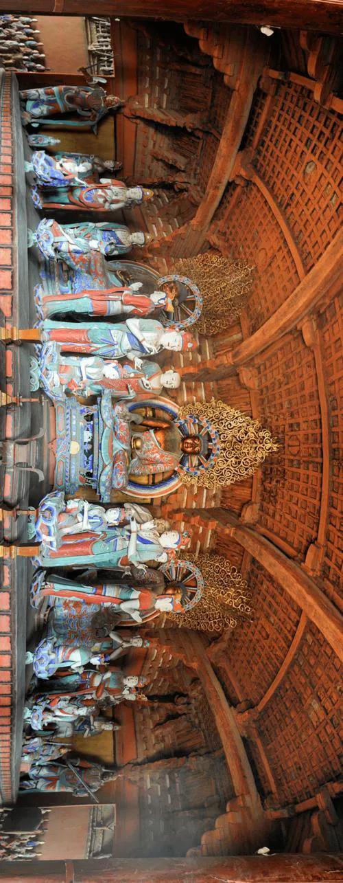 佛光寺,位于五台县豆村镇佛光村东南。据《清凉山志》记载,创建于北魏孝文帝时期(471-499),唐武宗会昌五年(845)灭佛,寺院除几座墓塔外,全部被毁。唐大中十一年(857)由京都女弟子宁公遇和高僧愿诚主持重建。金天会年间(1123-1137)于寺内前院两侧建文殊、普贤殿。元代补修殿顶、脊兽。明、清重建山门(天王殿)、伽蓝殿、香-雨楼、关帝殿和万善堂。