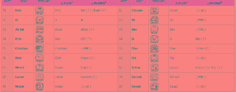 哈布历(Haab)则是玛雅的阳历,52个太阳历周期等于73个神历周期,长纪历大致上是以20为基数,是为了能单独计算所有天数而建立的。