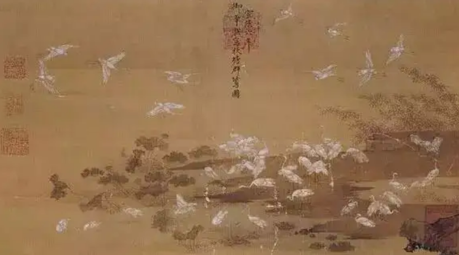 除此之外,朱瞻基还写得一手好字,字体遒劲有力,收笔干净利落,极具意味。如故宫博物院所藏《秋塘群鹭图》,正是宣德六年朱瞻基所画所写。