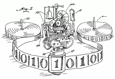这台抽象的计算机由四部分组成:一个无限长的纸带上面表示0和1的方格,一个可移动的读写头,一个可以记录当前状态的存储器,并且有一个特殊状态“停机状态”,一套程序可以控制读写器的逻辑动作。
