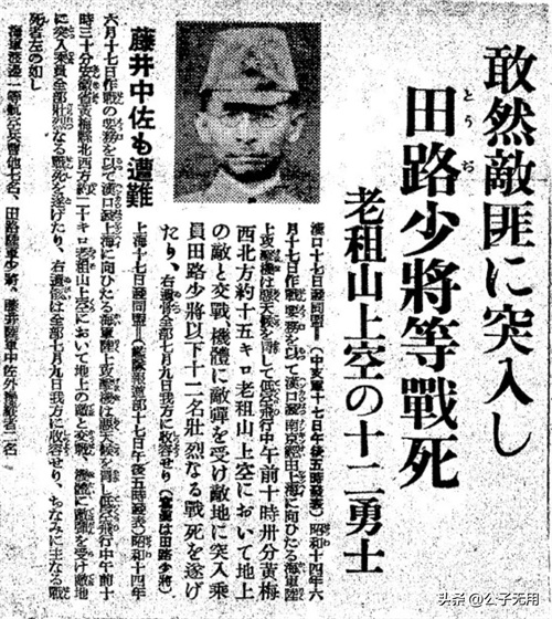 日军战报载:昭和十四年六月十七日,在黄梅西北方约十五公里老祖山上空,与地上敌军交战,田路少将以下十二人壮烈战死。