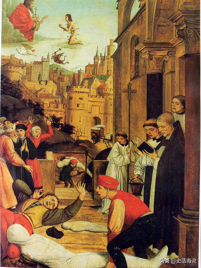 按照普罗柯比的记载,君士坦堡城墙外的空地,城墙周边的塔楼都堆满了尸体,还有更多的尸体被用小船推进海里。尸体发出的腐臭笼罩全城,几乎一瞬间,这座当时世界上最繁华的都城变成一座被死亡气息覆盖的死城。