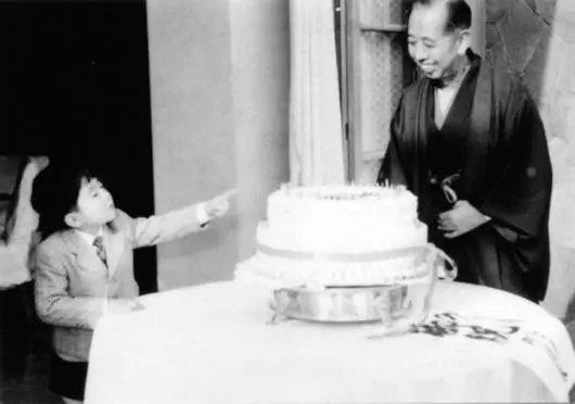 少年时的安倍晋三给外祖父(日本前首相岸信介)庆祝生日