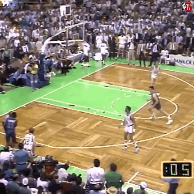 然后伯德接球,运了一次球,面对两人把球投进了篮筐!后来泽维尔麦克丹尼尔回忆到这件事时说,当时的想法就是“Damn!”