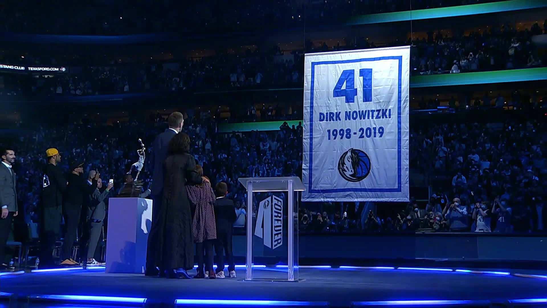 1月6日独行侠与勇士队赛后,球队正式为诺维茨基举办球衣退役仪式。