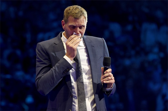 在更衣室里呆了大概十几分钟之后,诺维茨基从球员通道里走了出来,平静的脸上几乎完全看不出有流过泪的痕迹。