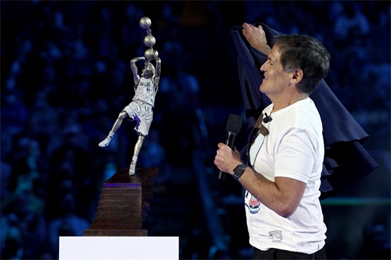 球队老板库班揭晓了一尊诺维茨基的雕像,表示将来要在球馆门口立一座真正的雕像,无论将来场馆是否变化,诺维茨基的雕像会一直在。