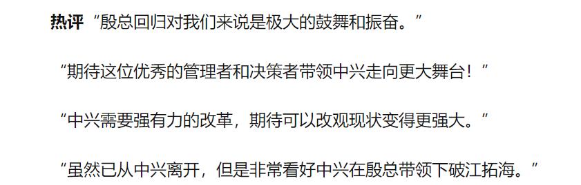 中兴员工评价殷一民:“他属于不见兔子不撒鹰的类型。”、“敢于决断”