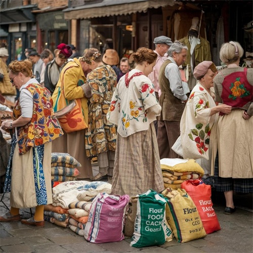 18. 大萧条期间,人们用食物袋做衣服,面粉袋、土豆袋等被转化为衣物。这一潮流促使食品分销商制作更加丰富多彩的袋子,以适应时尚需求。