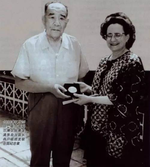 ▲联合国官员科尔博士向冉广岐颁发纪念章 图/网络