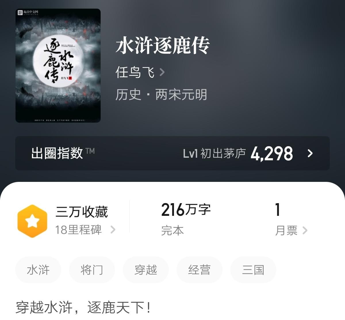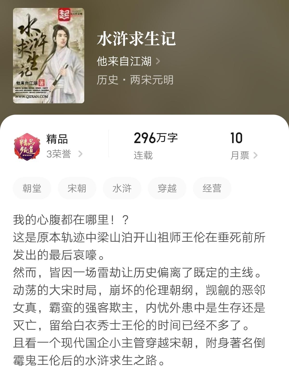 说一下,《赘婿》也有水浒元素,但是这本书以前推荐过了,我在这就不再推荐了,喜欢赘婿的书友们,不要喷我,谢谢大家了