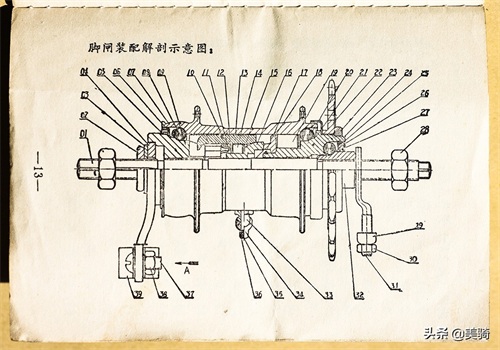 如果上面的这一推断是正确的,那么下面这两份自行车说明书肯定是1970年之后推出的版本。尤其是这本有些破旧的《成车按装说明书》,制作的非常用心。里面不仅有详细的文字说明,而且绘制了多幅零件与按装示例图片。