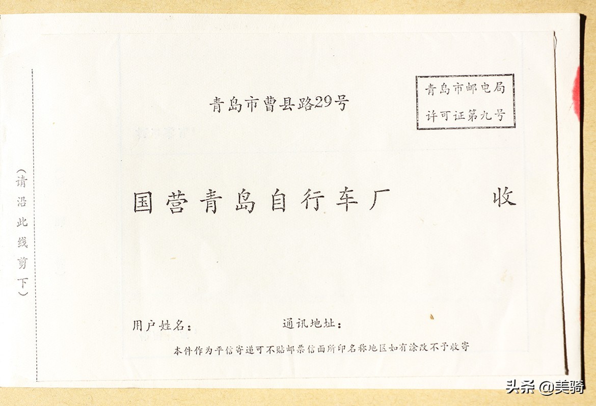 当年的大自行车厂在售后上做得还是比较认真,诸如夹在说明书中的这个信封,客户可以写好反馈意见,作为平信寄出,且不用额外花钱贴邮票。