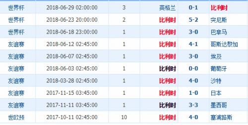 比利时近期比赛战绩