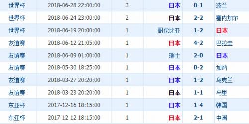 日本近期比赛战绩