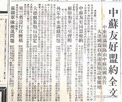 8月26日,国民政府对外公布《中苏友好同盟条约》全文,而“中共中央此前对国民党政府和苏联政府谈判过程以及条约等文件内容,毫无所知。”(唐洪森:《国共争战大东北》,科学普及出版社1999年5月第1版,第22、25页)。