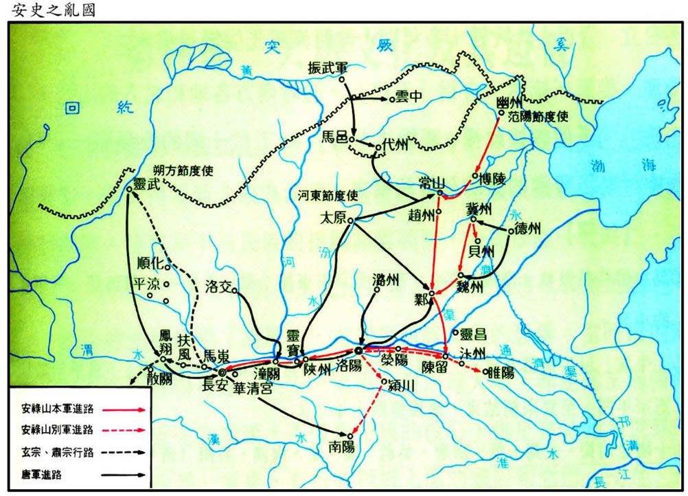 安禄山以忧国之危,奉密诏讨伐杨国忠为借口,在范阳(北京)起兵,其数下步骑精锐,烟尘千里,由于安禄山的东北势力庞大,骑兵之后没有遇到任何有效抵抗就占领河北,