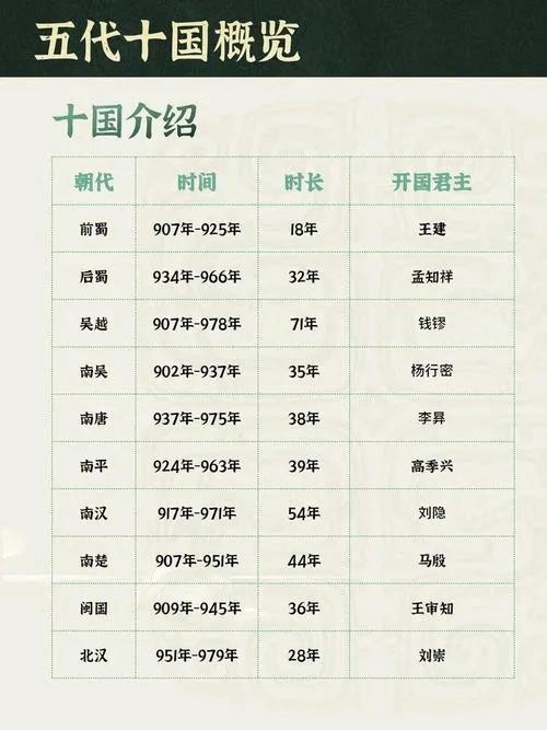 五代十国是中国历史上一个极为复杂而动荡的时期,约从公元907年到979年,历时七十余年。这一时期不仅是政治动荡的缩影,更是文化交融与社会变迁的重要阶段。今天,我们就来深入探讨这一历史时期的背景、主要事件及其对后世的影响。