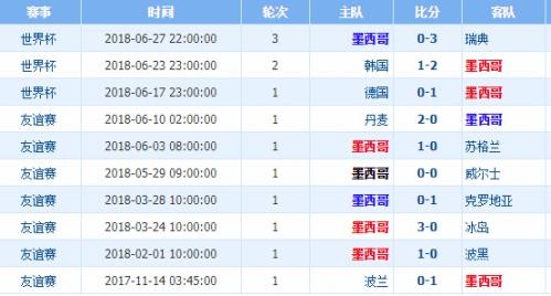 墨西哥近期比赛战绩