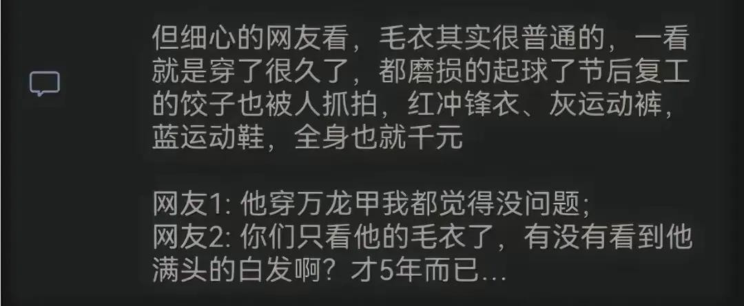 饺子自己也经历了从无到有、从质疑到肯定的心路历程。我们看到的,是一个不断追求突破的灵魂,是一个从低谷到巅峰的典型人物。而今天,我们该给他更多的尊重,而不是去让他为了那一件毛衣,去辩解些什么。