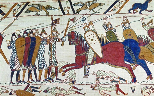 威廉以当初爱德华的承诺为由要求哈罗德让位于自己。威廉在遭拒后就厉兵秣马准备远征英格兰。1066年10月14日清晨九点威廉和哈罗德各自统率的军队在黑斯廷斯交锋,最终胜出的威廉完成了历史上最后一次对英国成功的军事入侵——诺曼征服。在诺曼征服后的三百余年间英格兰王国的君主与贵族都讲法语,教士们则习用拉丁语。征服者威廉以及他从欧洲大陆带来的诺曼贵族并不自视为英国人。