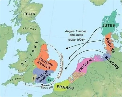 没多久来自欧洲大陆的盎格鲁、撒克逊和朱特三支日耳曼部族进入不列颠。这片土地开始逐渐被称为英格兰。“英格兰”一词其实就是指盎格鲁人的土地。英国前首相丘吉尔对此评价道:“在黑夜中入睡的是不列颠,黎明时醒来的却是英格兰”。此时的英格兰更多是一种地理文化上的概念。盎格鲁人、撒克逊人、朱特人以及原住民凯尔特人之间仍保持着较大差异,此时距离真正统一的英格兰民族形成还有很漫长的一段历史时期。