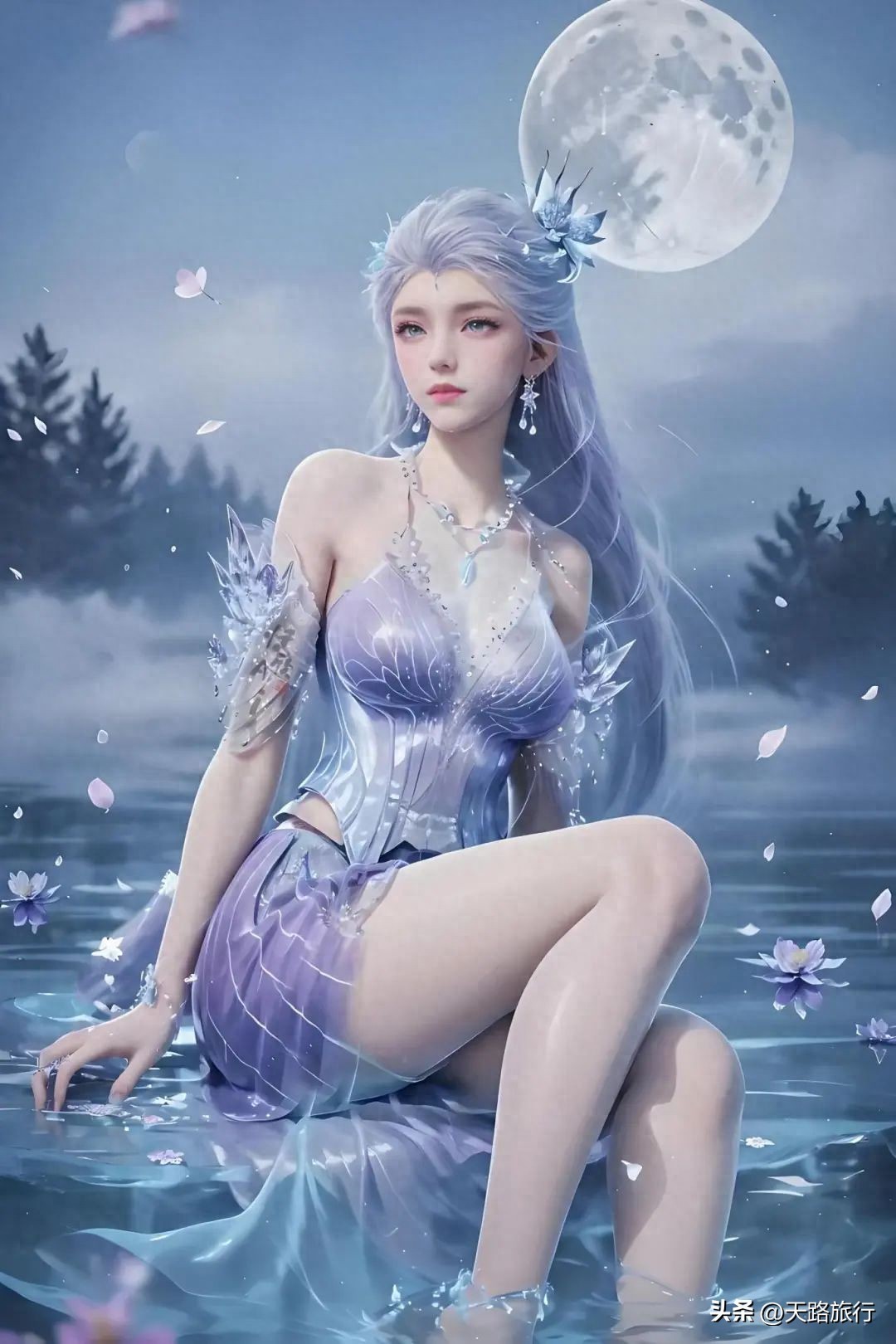 雪帝,一身银装素裹,仿佛自极北冰原中走出的冰雪女神,周身环绕着永不消融的寒冰之气,即便是炎炎夏日,也能感受到她身上散发出的刺骨寒意。她的长发如瀑,银白中泛着淡淡的蓝光,随风轻轻摇曳,宛如夜空中最亮的星河,既遥远又亲近。那双眸子,是深邃的冰蓝,仿佛能洞察世间万物的本质,又藏着无尽的哀愁与孤独。她的面容,精致得如同精心雕琢的艺术品,每一处线条都恰到好处,既有着少女的纯真无邪,又蕴含着女王般的威严与高贵。每当她轻启朱唇,即便是最平凡的言语,也似乎被赋予了不可抗拒的力量,让人心生敬畏,不敢直视。