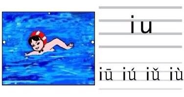 二、 复韵母iu 的发音:读 iu 时,先发 i 的音,然后口形由扁变圆,轻轻滑向 u 的发音----iu .