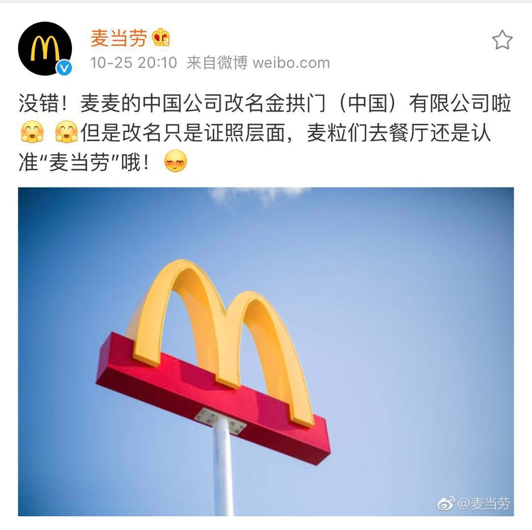 此次更名引发网友热议。25日晚间,麦当劳官方微博发布消息称,“麦麦的中国公司改名金拱门(中国)有限公司啦。但是改名只是证照层面,麦粒们去餐厅还是认准‘麦当劳’哦!”