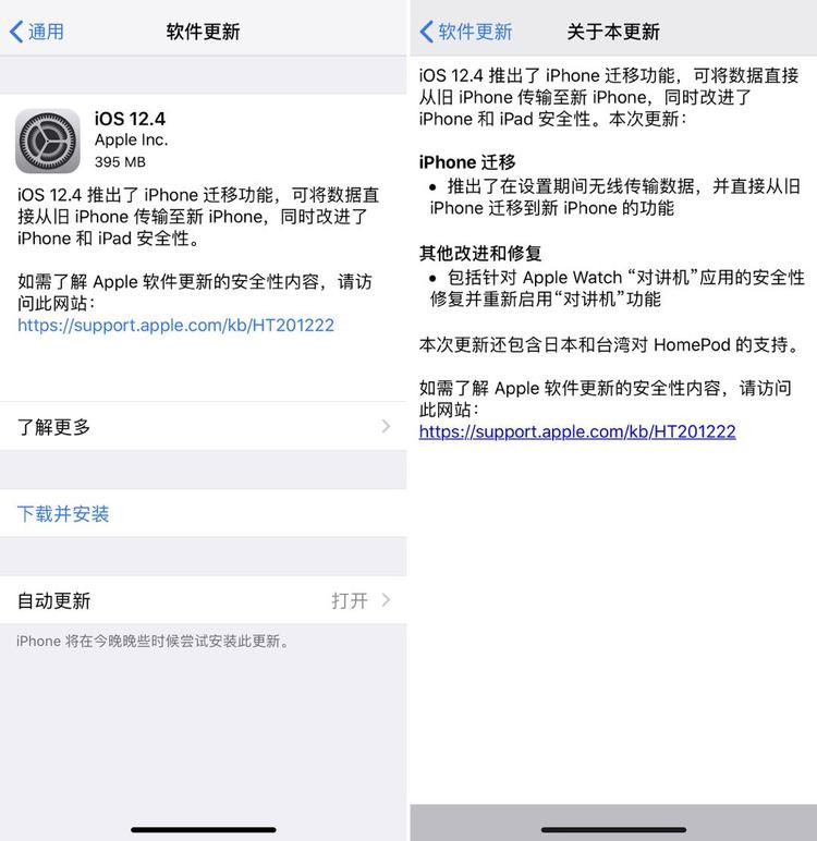 苹果发布新系统iOS 12.4,数据可无线同步至新机