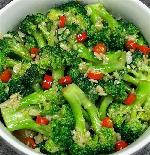 蒜香西兰花:绿油油的西兰花加上多多的蒜末,蒜香味十足,吃起来又清爽又健康。