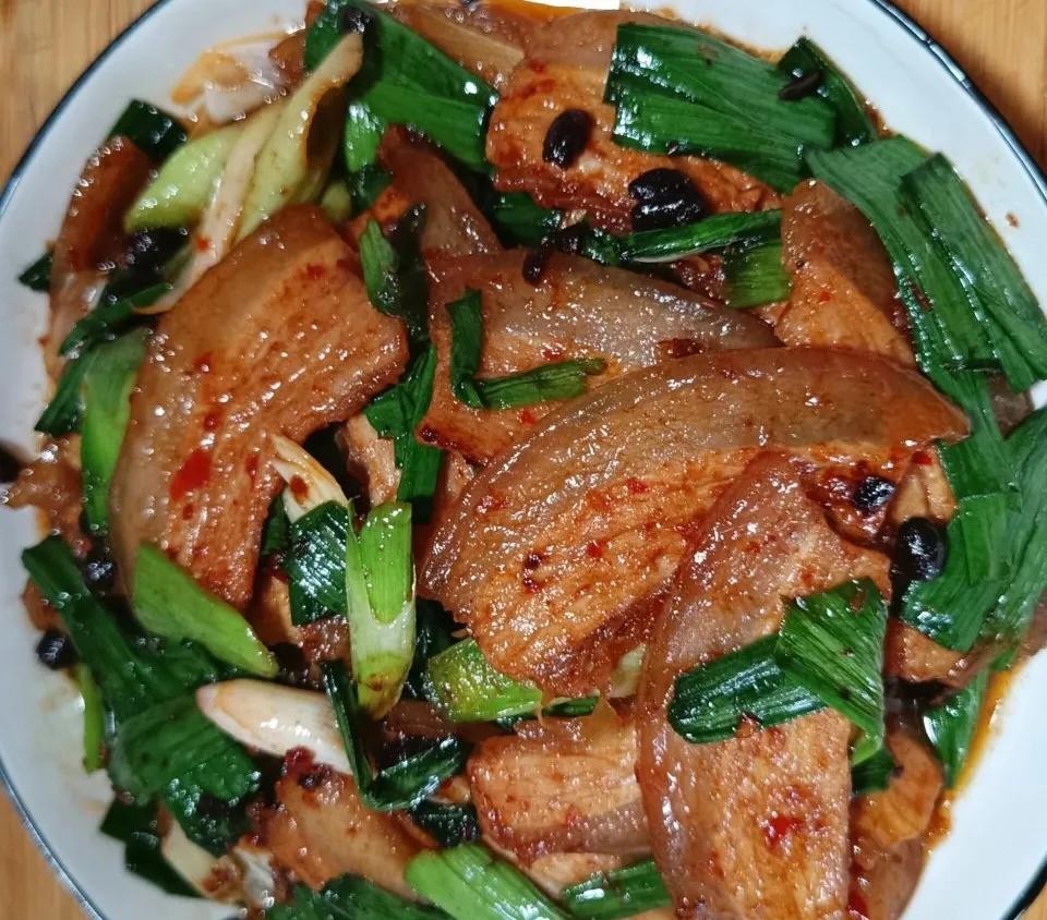 蒜苗炒回锅肉:把煮过的五花肉切成片,和新鲜的蒜苗一起炒,好吃又下饭,