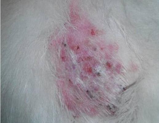 狗狗感染这种病之后,眼睑和周围的皮肤,肘部和腹部等内侧会出现脱毛的情况,皮肤变得粗糙还会有小结节,在i兵器你更严重的时候,狗狗的身体上回出现大小不一样的脓疱,脓疱中含有很多虫体和虫卵,还会出现脱毛和身上结痂出血的情况。