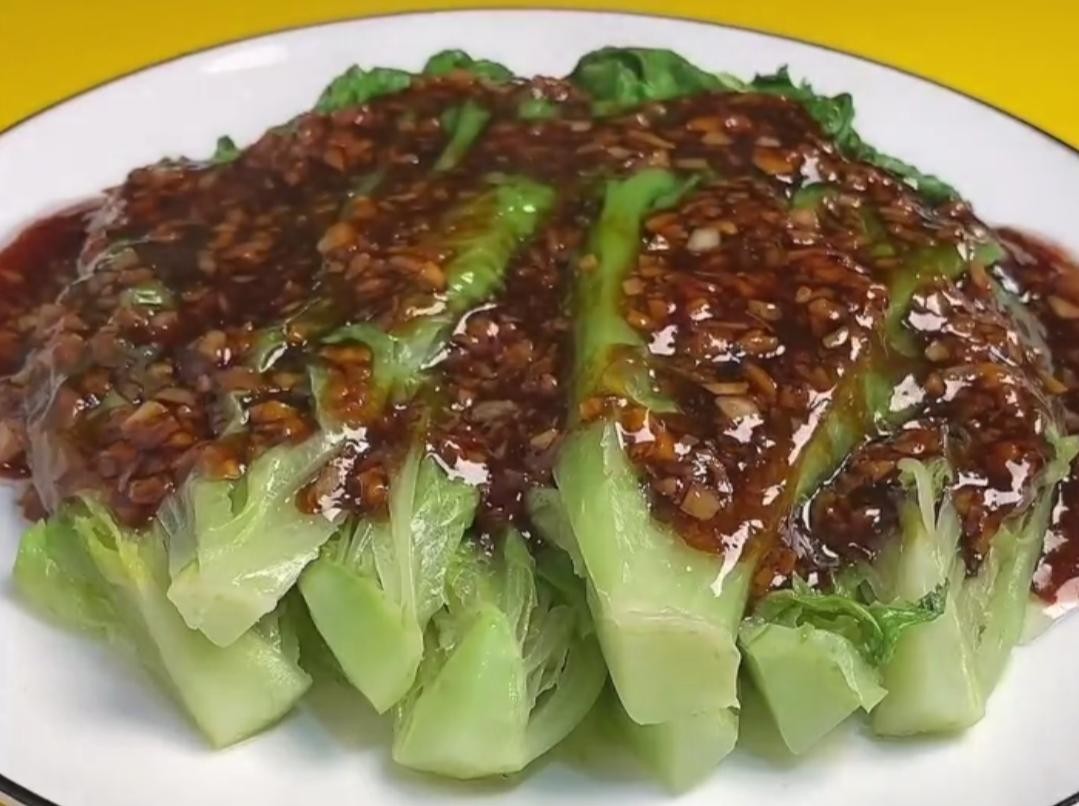 再把这个芡汁均匀地淋在生菜上就可以了。一道简单的蚝油生菜就做好了。味道非常的不错,吃起来爽脆味美,做法也很简单,喜欢的赶紧试一下吧。感谢大家的关注!