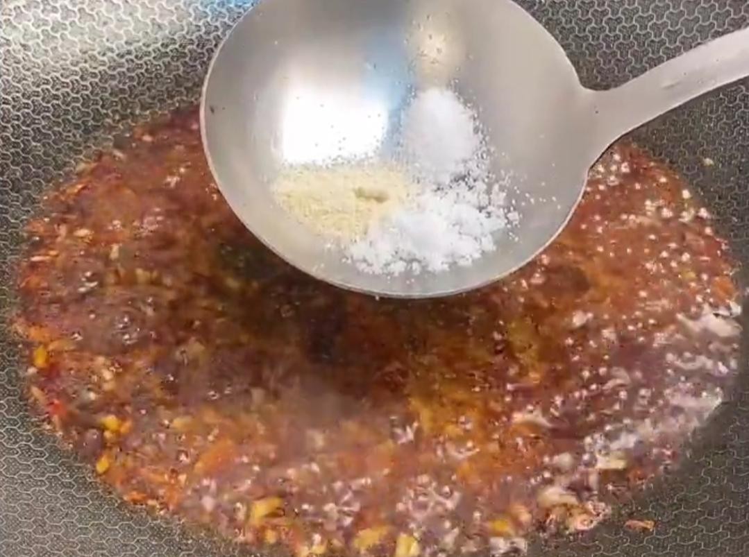 下面锅热倒入食用油,油热以后下入蒜蓉,炒出蒜香味儿,再加上蚝油和酱油炒香。之后加入适量的水,少加上点儿盐,鸡精,白糖,再用水淀粉勾个芡,勾至粘稠。