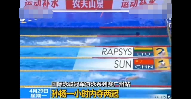 国际永联冠军游泳赛广州站,孙杨一小时内夺得双冠!