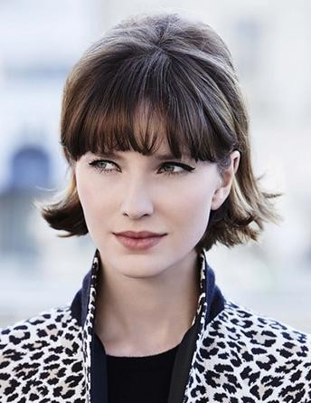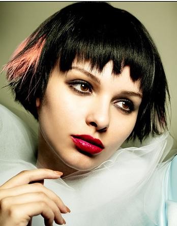 及耳富有层次感的锅盖头,不规则的眉上刘海将五官衬托得更为立体清秀。给人一种干净利落的感受。
