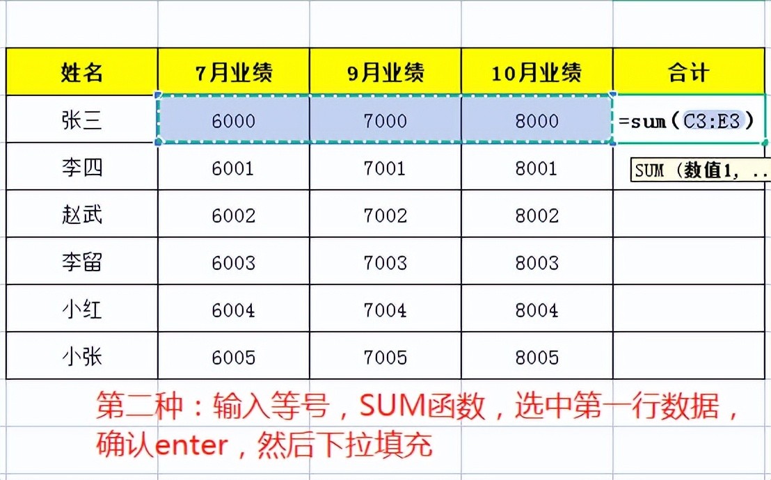 Excel中求和共有三种方法