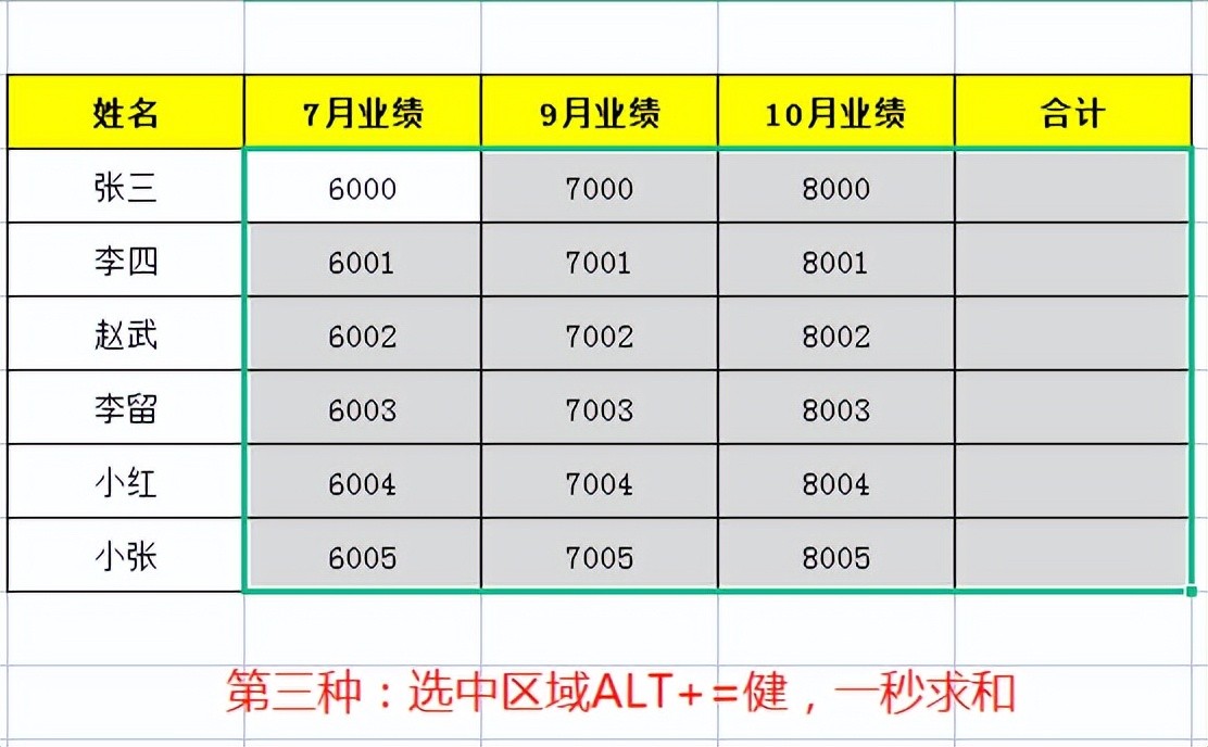 Excel表求和的三种方法,强烈推荐第三种(快速求和)