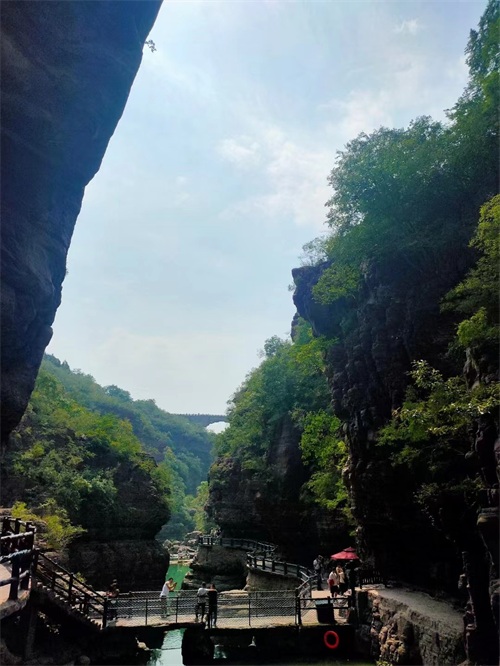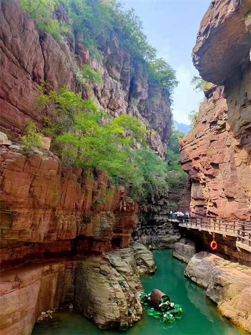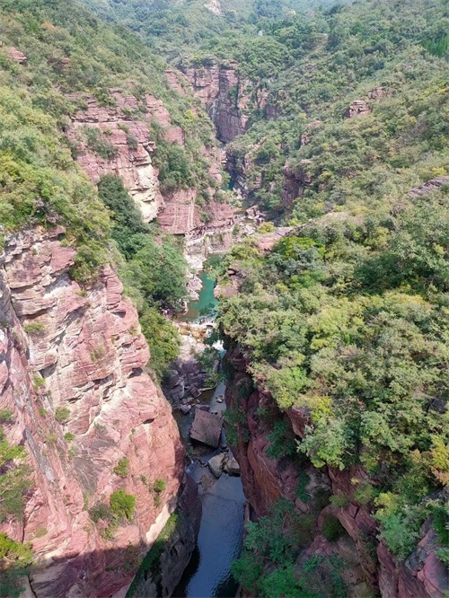 焦作云台山之”红石峡“,全长1500米,是中原地区独有的丹霞地貌红岩绝壁峡谷。夏天凉爽宜人,冬天苔青草翠,集泉、潭、瀑、溪于一谷,幽、秀、雄、险于一身,有“盆景峡谷”的美誉。