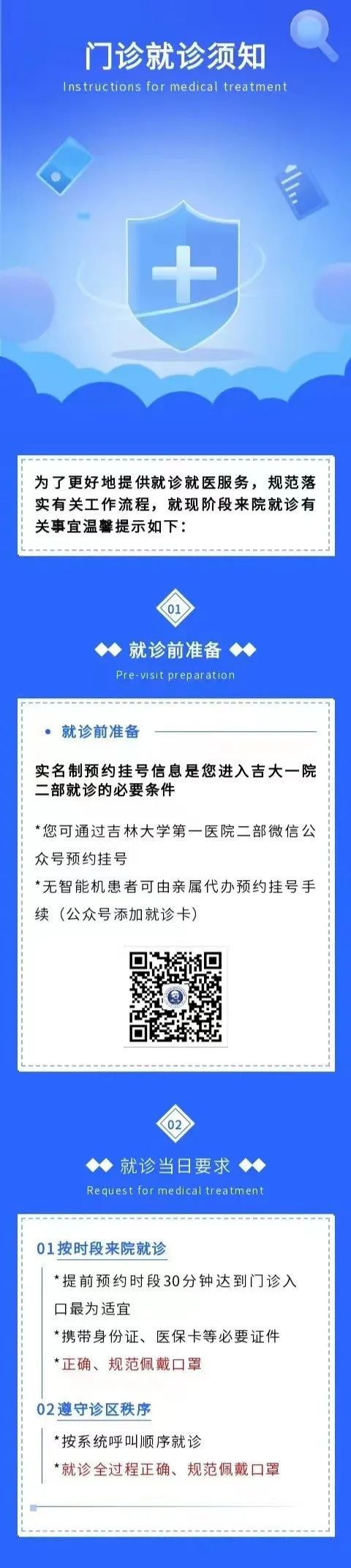 吉大一院微信发布消息称吉大一院乐群院区1月3日开诊,并提醒市民关注2023年最新就诊须知——