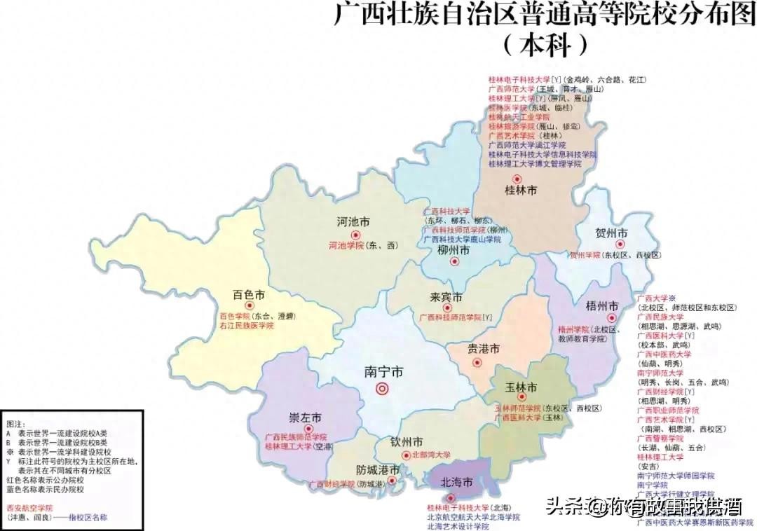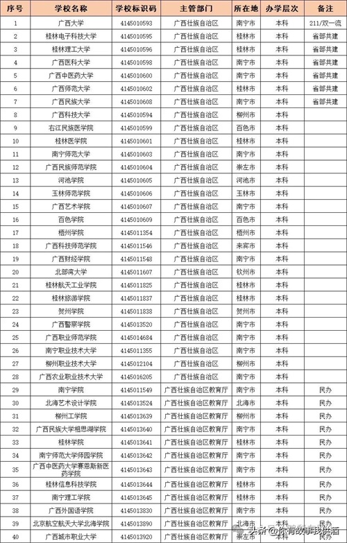 广西高校分类。附广西自治区大学名单大全(2024版)。