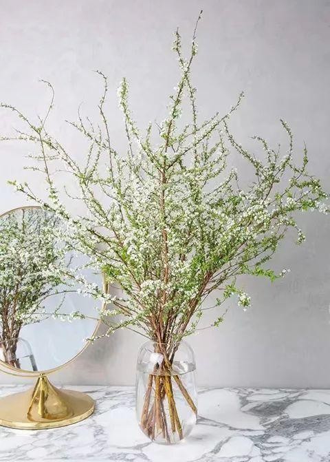 养护也很简单,回家之后剪成你需要的长度,枝条下方斜剪,插到你喜欢的花瓶里,花瓶里装满水,平时喷喷水,晒晒太阳,半个月就能开花~
