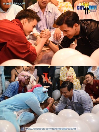 《Take Guy Out Thailand》是由知名艺人Nanake和kalamare担任主持人,强调是历史性上第一个男同志的联谊秀。节目一开场每位等待着“有缘人”出现的嘉宾,都使出浑身解数,摇动身体炒热气氛,接着就像我们所熟悉的相亲节目一样,每一集的参赛者登场都会引起现场骚动。