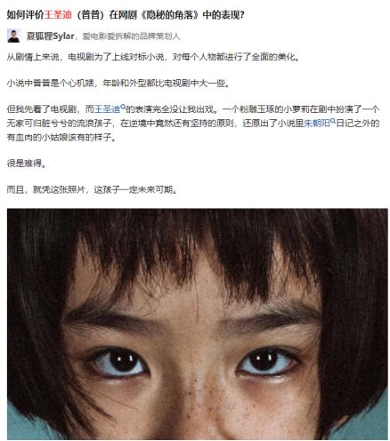 2010年出生,现在13岁的少女——“小戏骨”王圣迪,靠《隐秘的角落》出圈,