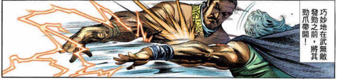 在千钧一发之际,以排云掌之翻云覆雨,巧妙的在武无敌发劲之前,将其爪劲带开!