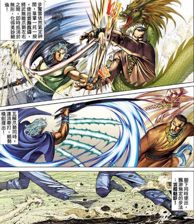 劲招临门,步惊云却依然气定神闲,只见他单掌一脱一按,使出云海波涛,将武无敌爪势抵消于无形!